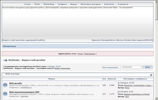 Был в 2006 году форум, назывался Rusforumz. Он был для вебдизайнеров.Я там активно сидел и писал. Администрация делала журнал Webdix, которое было для меня как глоток свежего воздуха. Вместе эти проекты заложили фундамент в мою любовь к сайтостроительству, форумам и заработку в интернете.