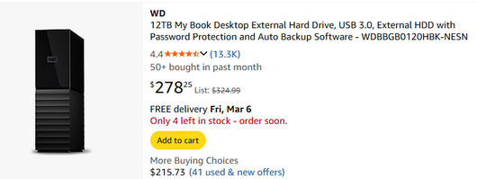 На сайте DNS смотрел HDD WD Blue на 500 ГБ в новой обвёртке стоит 4600 рублей, в то время как Toshiba дороже, а 500 ГБ тоже WD, но чёрный Black вообще 10299 рублей, и это по сравнению с тем, что такой же WD Black 500 ГБ в частном компьютерном магазине в Гатчине в прошлом году взял вообще за 4500 рублей, и это HDD из 2020 года, долго лежал нераспакованным. 10 лет назад естественно было дешевле, в 2016 я на 1 ТБ толщиной 9 мм стандартной WD Blue брал за 4500 рублей примерно, в то время как нынче остались только тонкие 7 мм HDD, и это я поясняю за ноутбучные 2.5 дюйм.