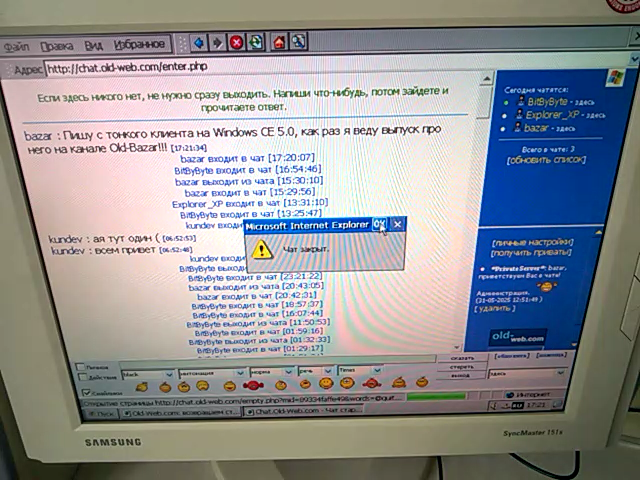 Windows CE англоязычная, не все кодировки в комплекте, на chat.old-web.com кракозябры из-за несовместимости кодировки (вспоминаем выпуск Old-Bazar с тонким клиентом на Windows Embedded CE 6.0 анлоязычной), зато сам сайт и форум почитать можно!