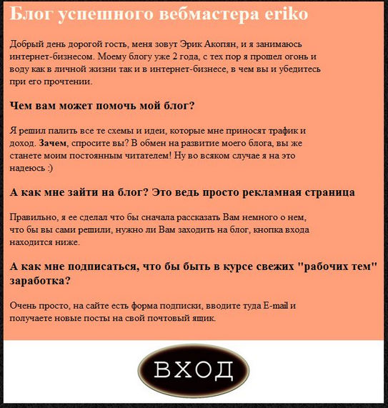 Я вебмастер, делаю сайты. Мой блог: http://erikoblog.ru. Mail Агент: eriko89@mail.ru || KICQ: 3225525 |